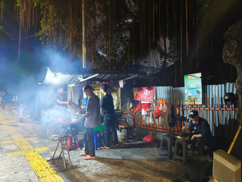 Penjual sate sedang melayani para pembeli di Jakarta, pada 16 April 2025. (Indonesia Window)