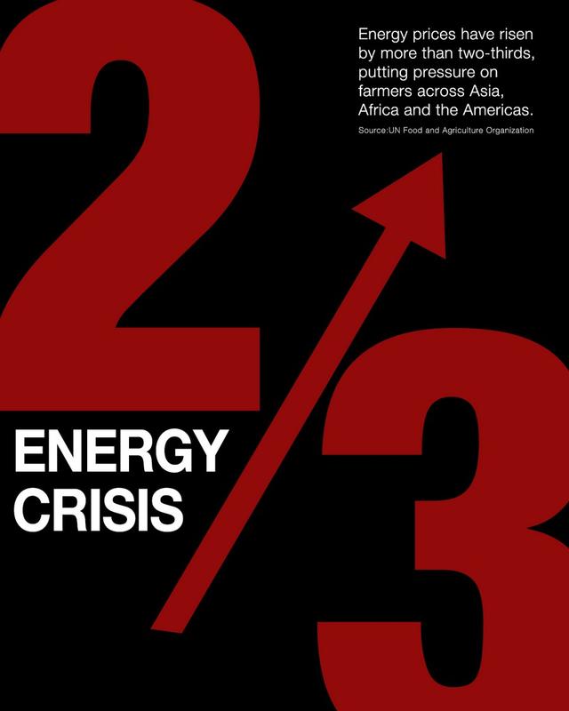Menurut Organisasi Pangan dan Pertanian (FAO) Perserikatan Bangsa-Bangsa (PBB), indeks harga pangan mencapai 159,7 poin pada Maret tahun lalu, tertinggi sejak 1990. Sekretaris Jenderal PBB Antonio Guterres pada Juni 2022 mengatakan bahwa harga pupuk naik lebih dari 50 persen, dan harga energi telah meningkat sebesar lebih dari dua pertiga, memberikan tekanan terhadap petani di seluruh Asia, Afrika, dan Amerika.