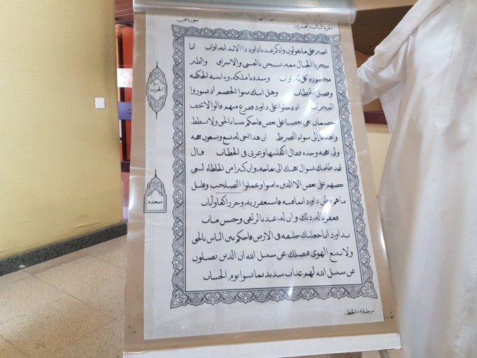 “Pertama, kita buat salinan naskah Al-Qur’an yang ditulis hanya dengan huruf Arab tanpa satu pun tanda baca, atau sama persis seperti mushaf Al-Qur’an pertama di zaman Khalifah Utsman bin Affan,” kata Al-Husain.