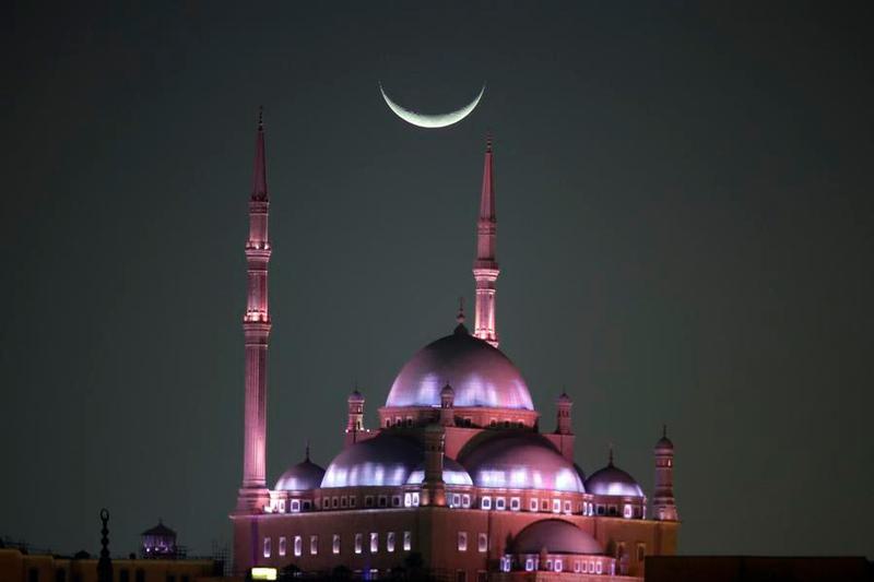 Bulan sabit terlihat di atas Benteng Saladin pada hari kedua bulan suci Ramadan di Kairo, Mesir, pada 20 Februari 2026. (Xinhua/Ahmed Gomaa)