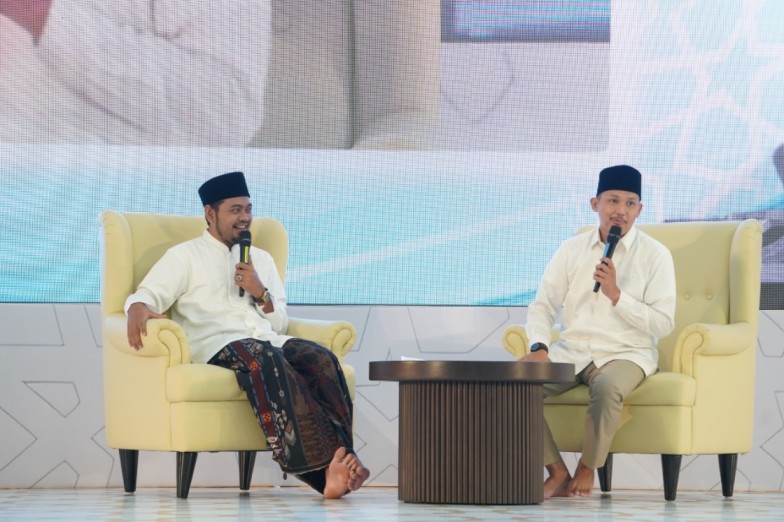 Talkshow ‘ngabuburead’ yang dikemas dengan sentuhan dakwah yang ringan dan penuh humor yang diisi oleh Dai sekaligus influencer Ustadz Ambia Dahlan (kiri) di Masjid Negara Ibu Kota Nusantara, Sabtu, (7/3/2026). (Kementerian Agama RI)